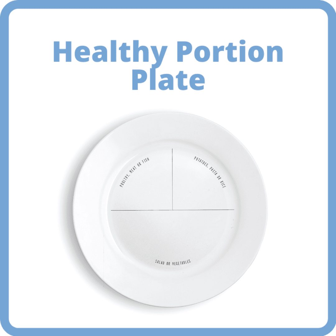 Healthy Portion Plate is a 10inch melamine plate divided into three easy to understand sections to portion food groups quickly & simply to control calories